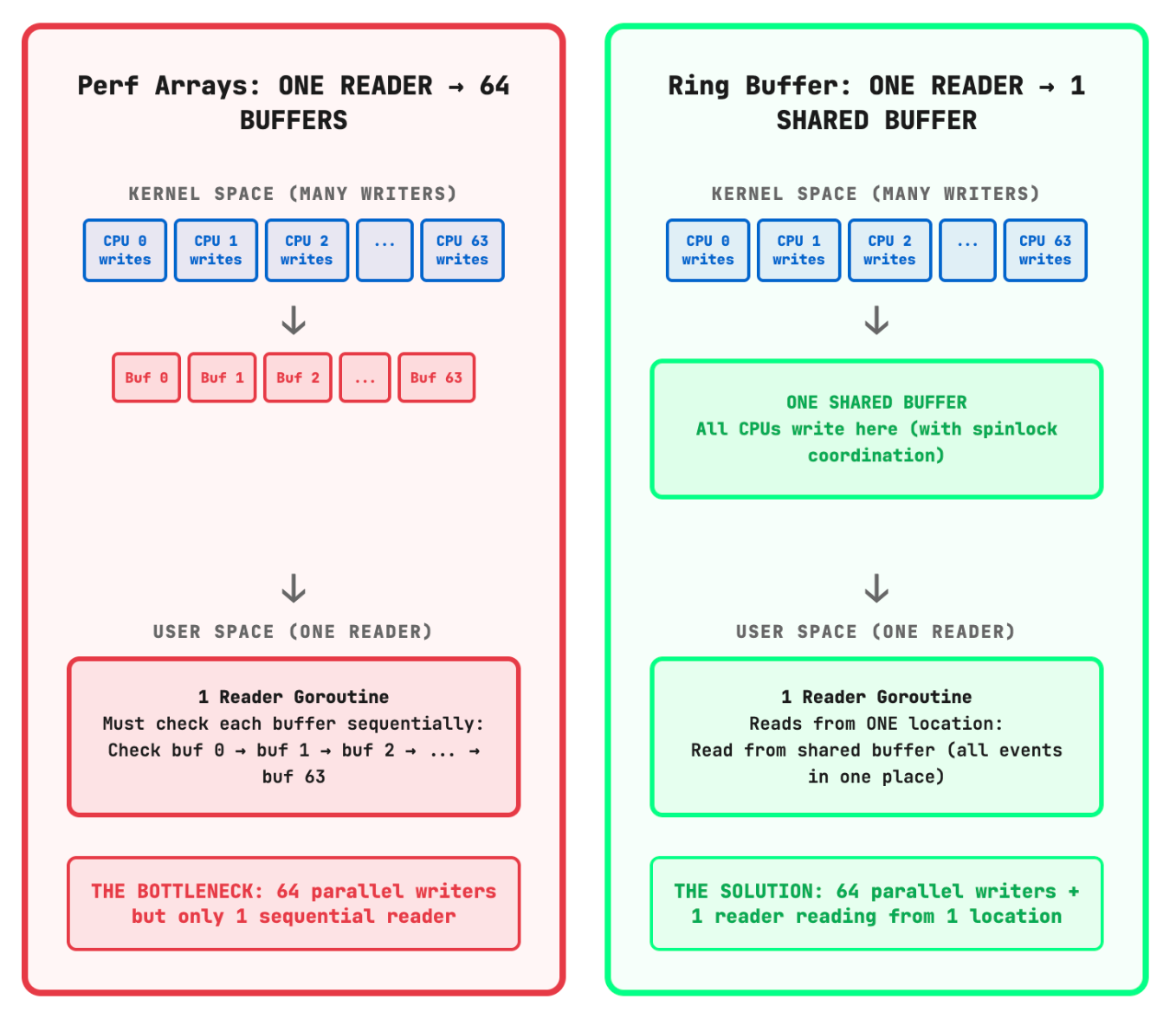 This investigation highlights why the choice of buffer mechanism “Perf Arrays vs. Ring Buffers” isn’t just an implementation detail. It defines the scalability of your observability stack.