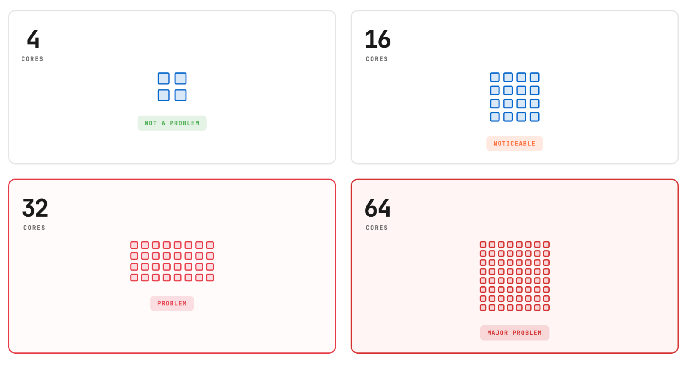 This led us to investigate which components were scaling poorly with the CPU core count. Let’s go down the debugging path.